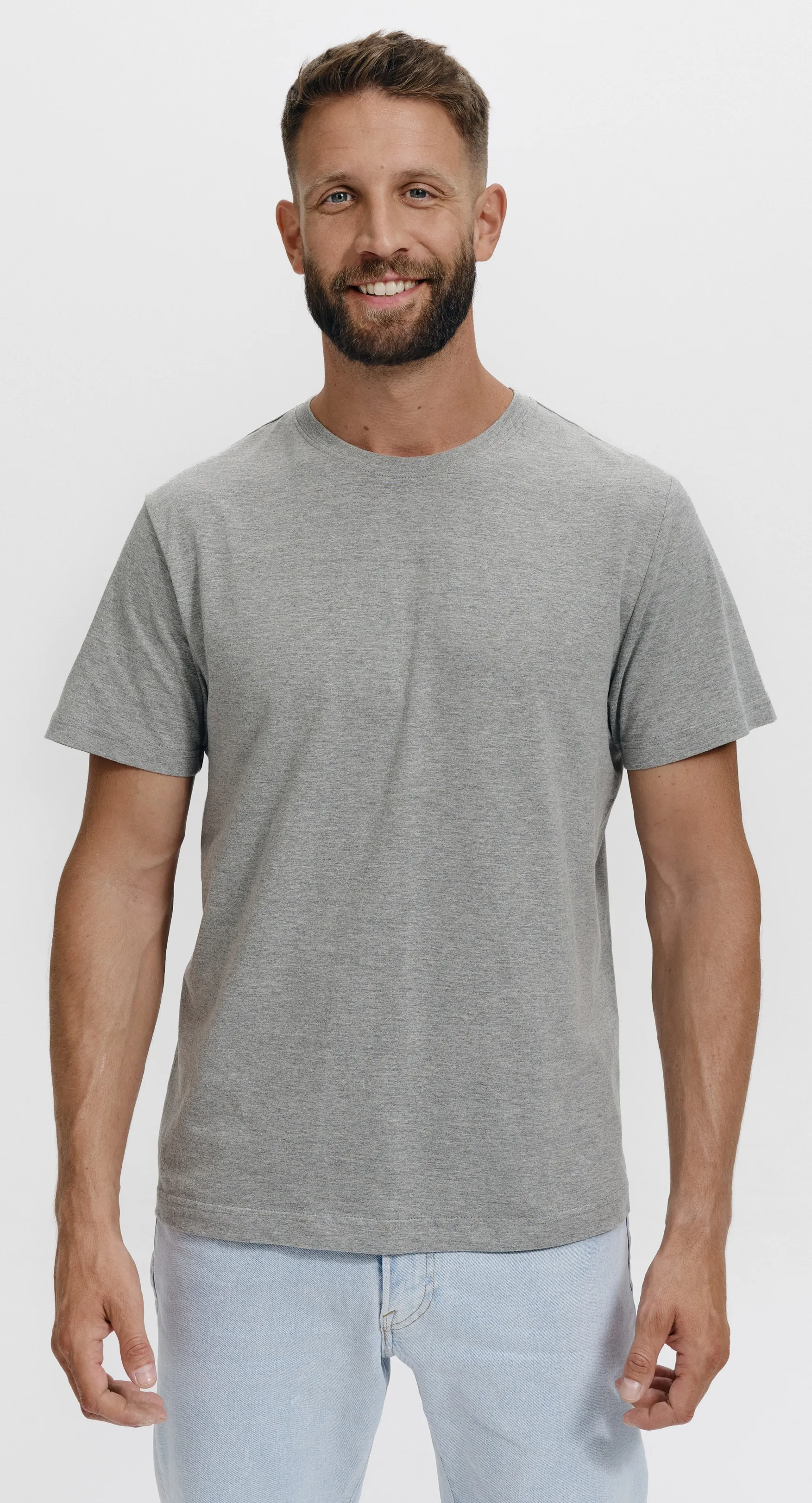 Rendes egyszerű pamut férfi póló, rövid ujjú, kerek nyakkivágással. Egész éves viseletre alkalmas.