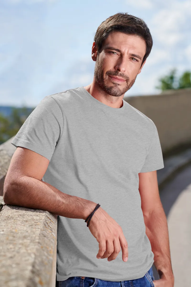 Rendes egyszerű pamut férfi póló, rövid ujjú, kerek nyakkivágással. Egész éves viseletre alkalmas.