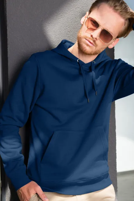 Férfi pulóver kapucnival cipzár nélkül, éjkék