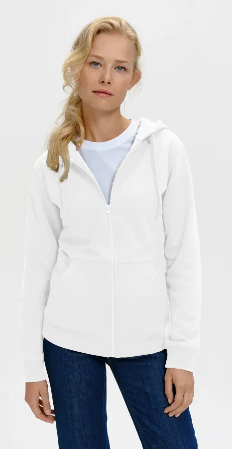 Női pulóver kapucnival, fehér, XL